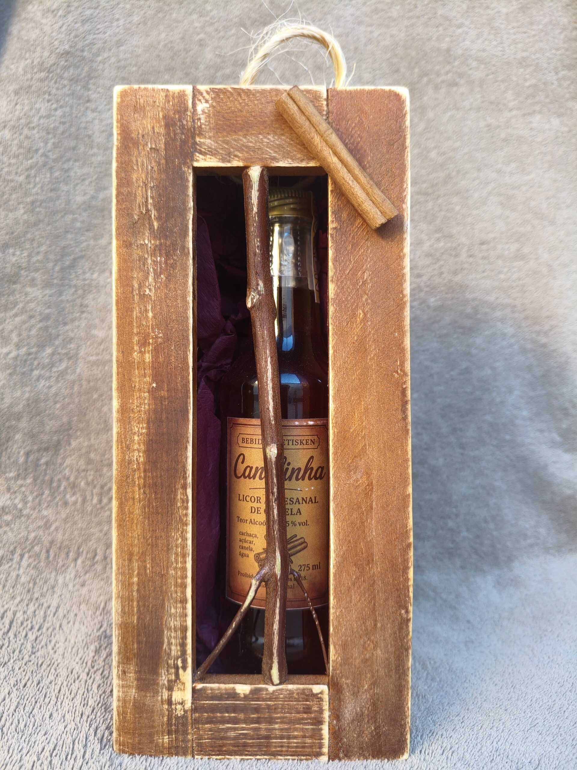 • Conteúdo: 01 Garrafa de 275ml + 01 Estojo Artesanal de Madeira com Tampa